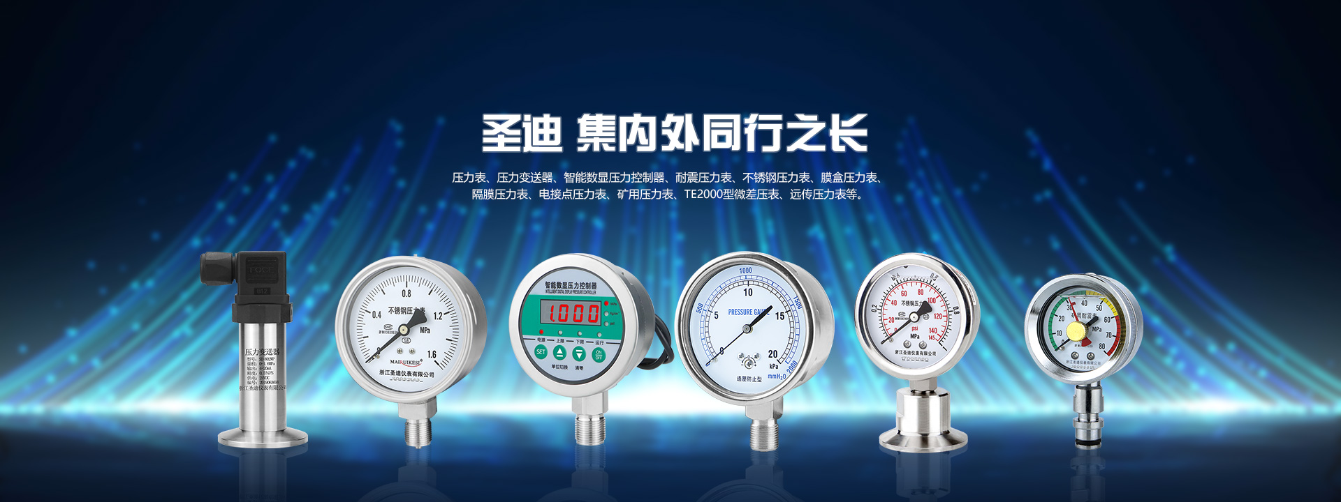 浙江圣迪儀表擁有先進的生產設備,完美的質檢儀器和齊全的模具加工設備,主要生產:生產壓力儀表、微差壓表、不銹鋼壓力表表閥、耐震電接點壓力表、電接點壓力表、卡箍式隔膜壓力表、不銹鋼壓力表、壓力變送器等產品,